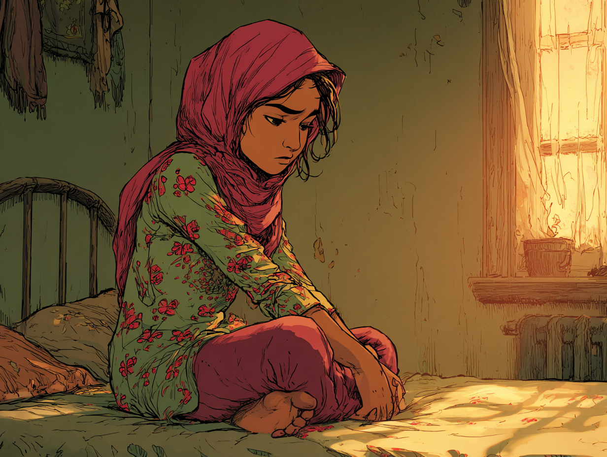 Aïda haalt diep adem en gaat naar haar kamer. Ze sluit de deur zachtjes achter zich en gaat op de rand van haar bed zitten. Het lukt haar niet om haar gedachten te verzetten.